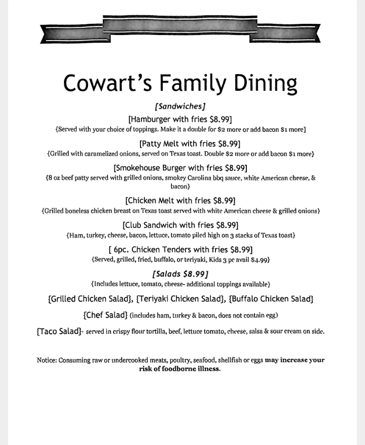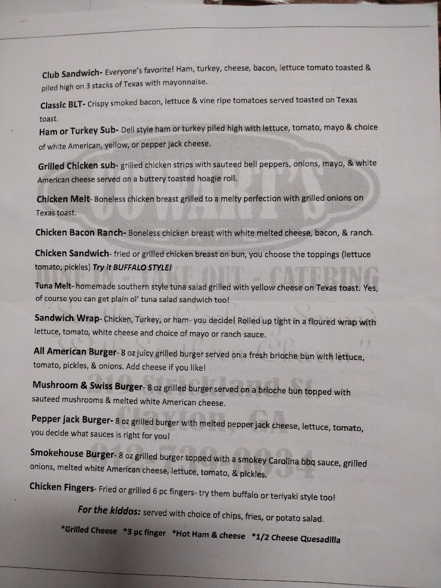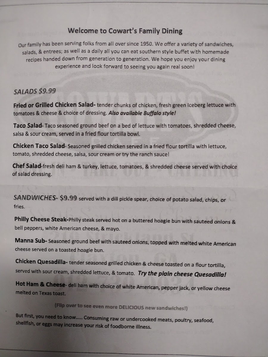Introducing Cowart's Family Dining, a delightful gem located in the heart of Claxton, GA. This eatery specializes in authentic Southern cuisine, where every dish tells a story of tradition and comfort. From the moment you walk in, the friendly atmosphere welcomes you like family, making it a perfect spot for home-style cooking.